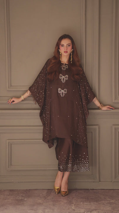 - Embroidered Charmeuse Silk With Hand Embellished Kaftan Shirt