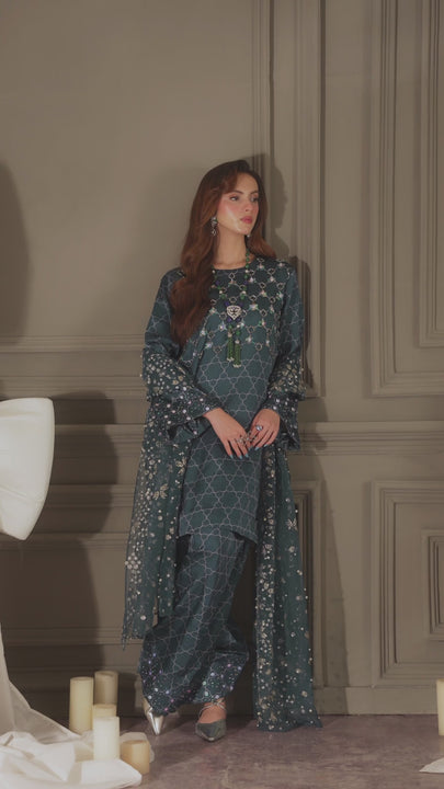 - Embroidered Printed Silk With Hand Embellished Long Shirt